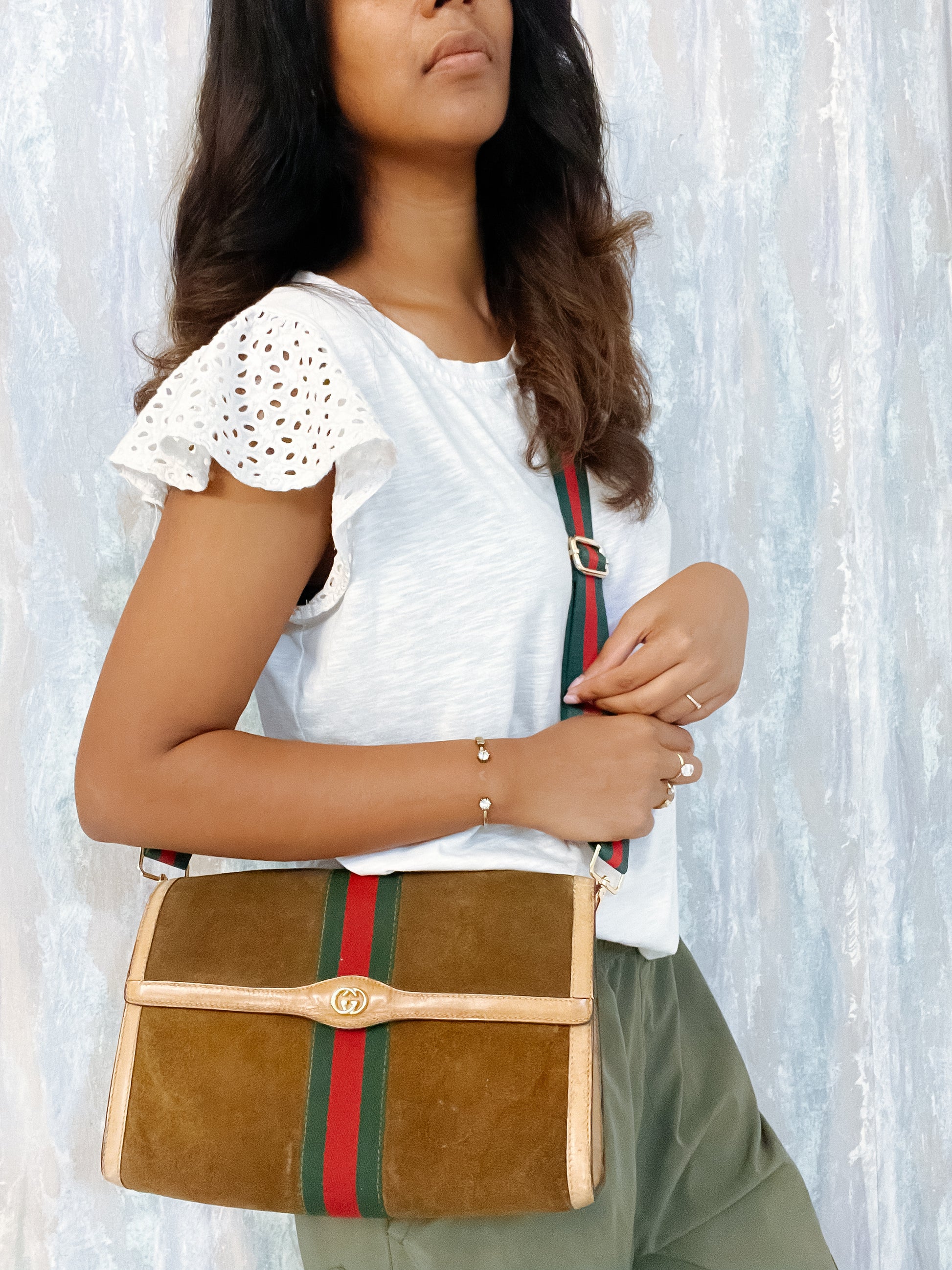 Authentic Gucci Vintage Sherry Suede Leather Bag