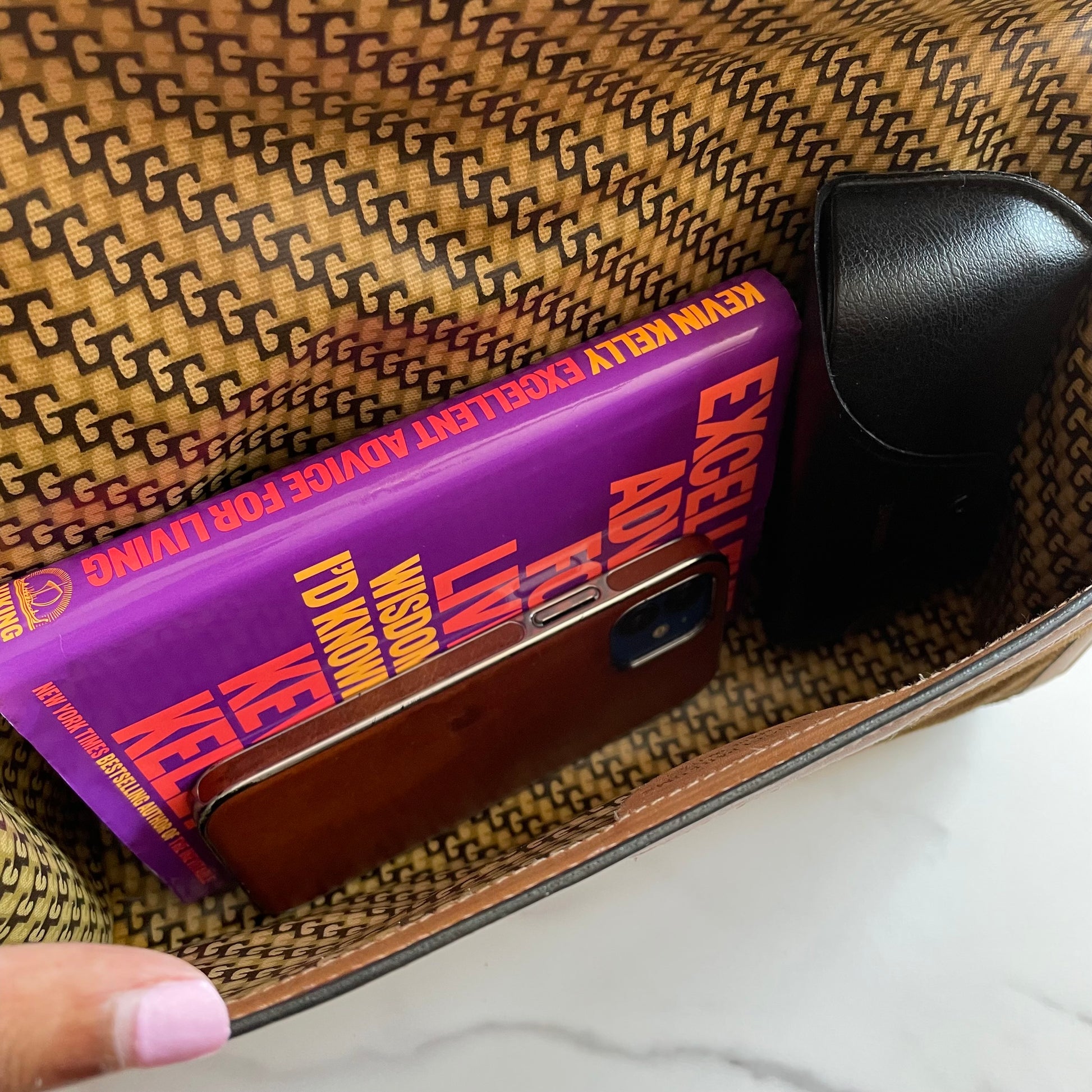 The interior is clean and spacious with signature GG lining - can easily hold a long wallet, phone and much more.