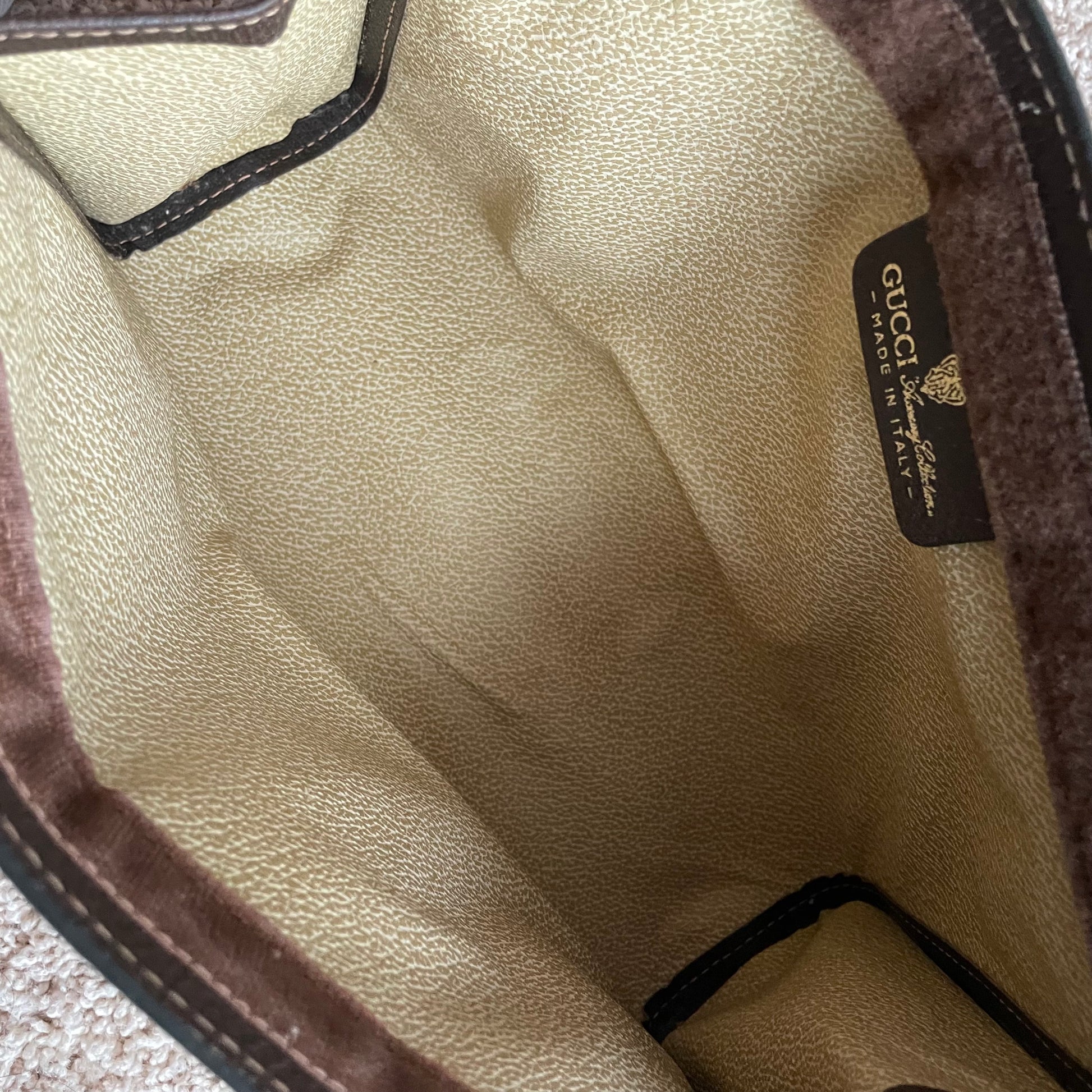 Clean Spacious suede bag interior. Can easily hold a long wallet, phone and so much more!