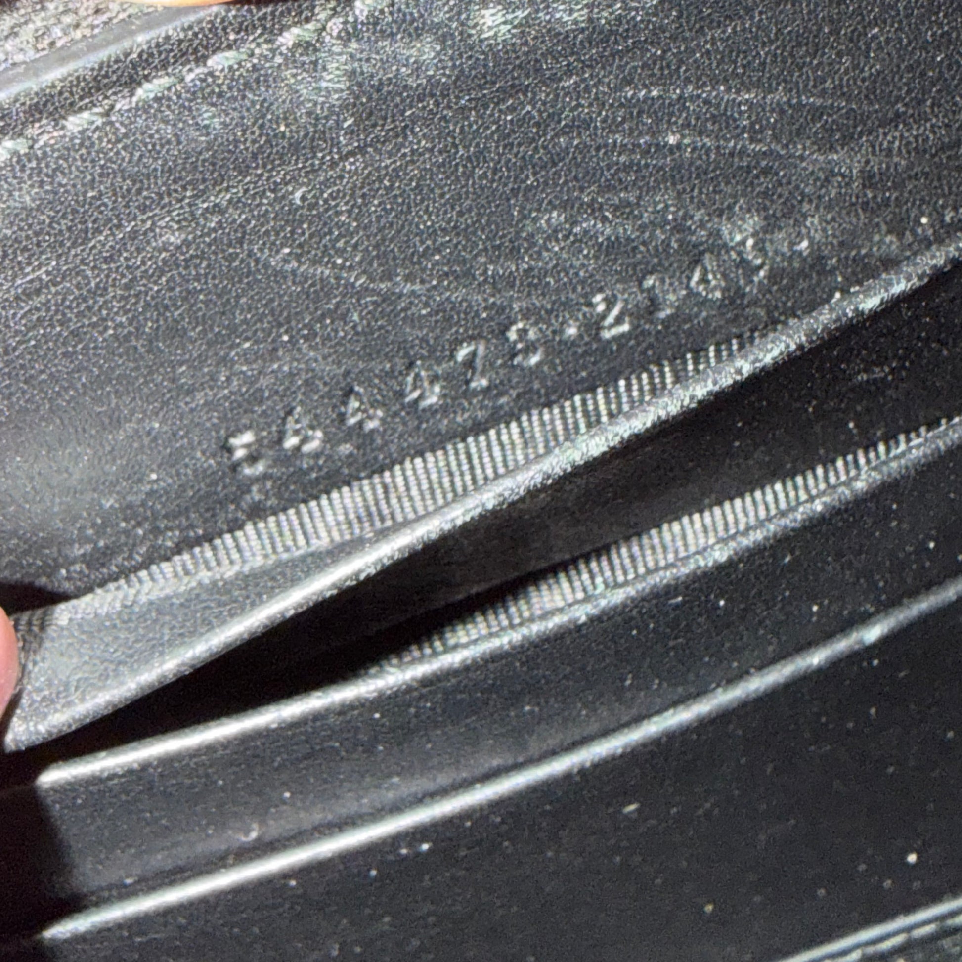 Serial code embossed under a top card slot
