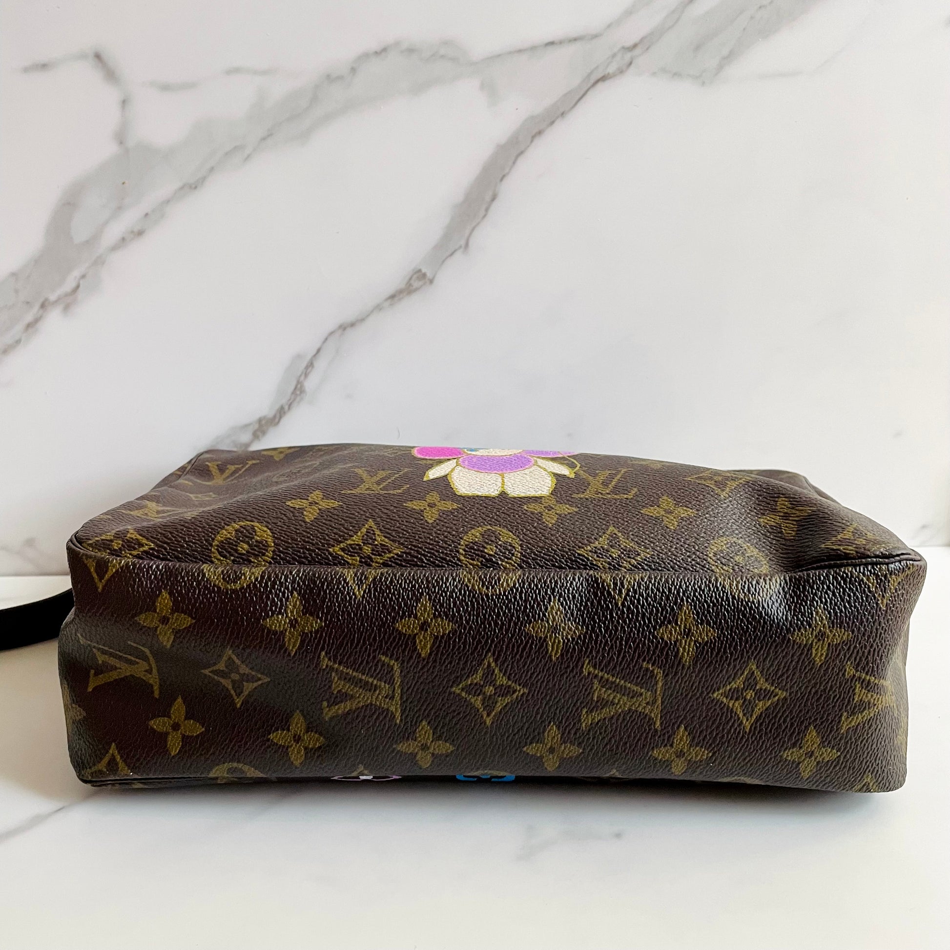 Louis Vuitton signature brown monogram coated canvas with an ivory waterproof pvc interior. The clean interior has a slip pocket and 3 bunched elastic holds. No visible discoloration or stains.
