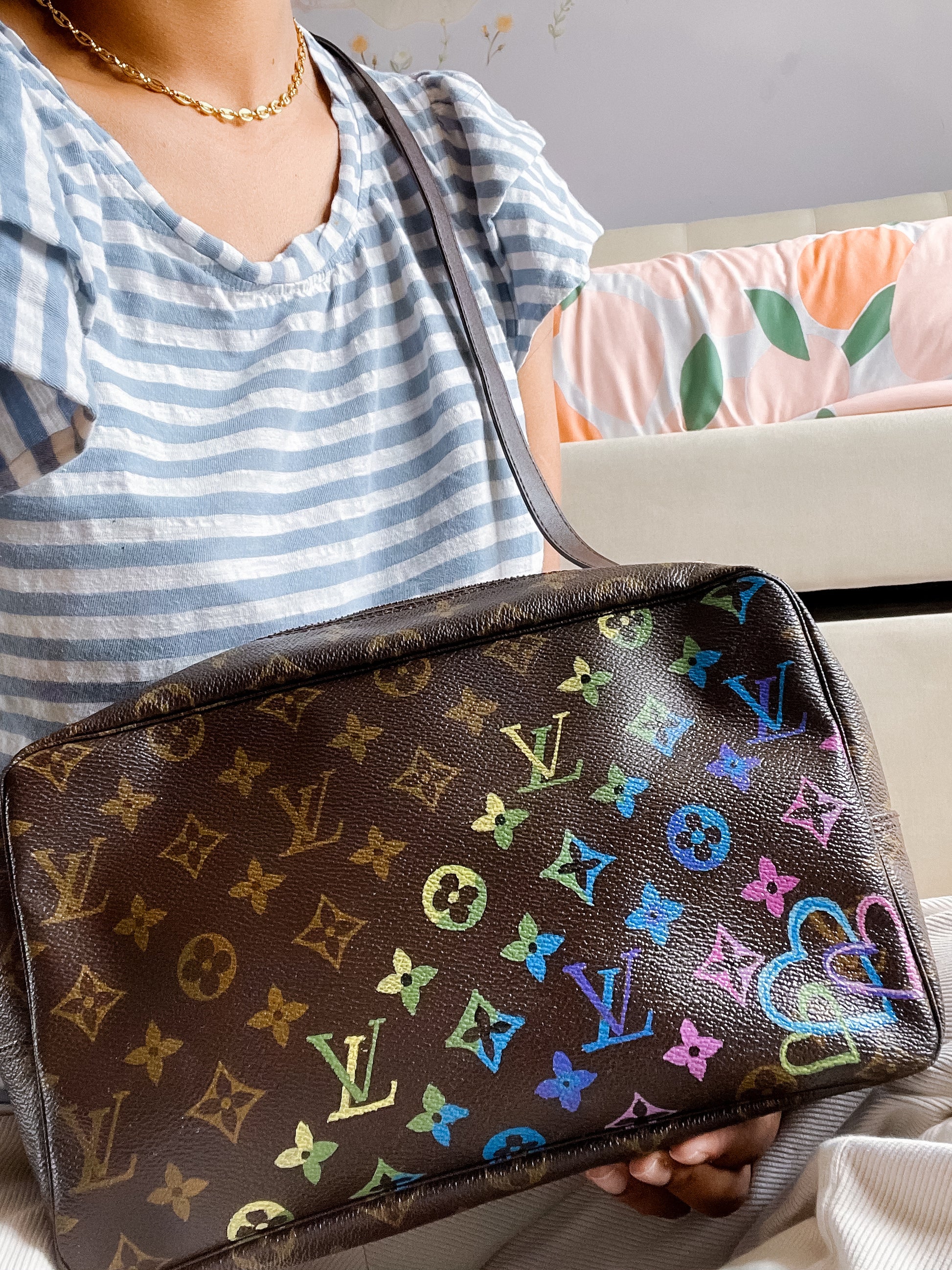 Experience the perfect blend of style and functionality with this reworked Louis Vuitton crossbody bag.