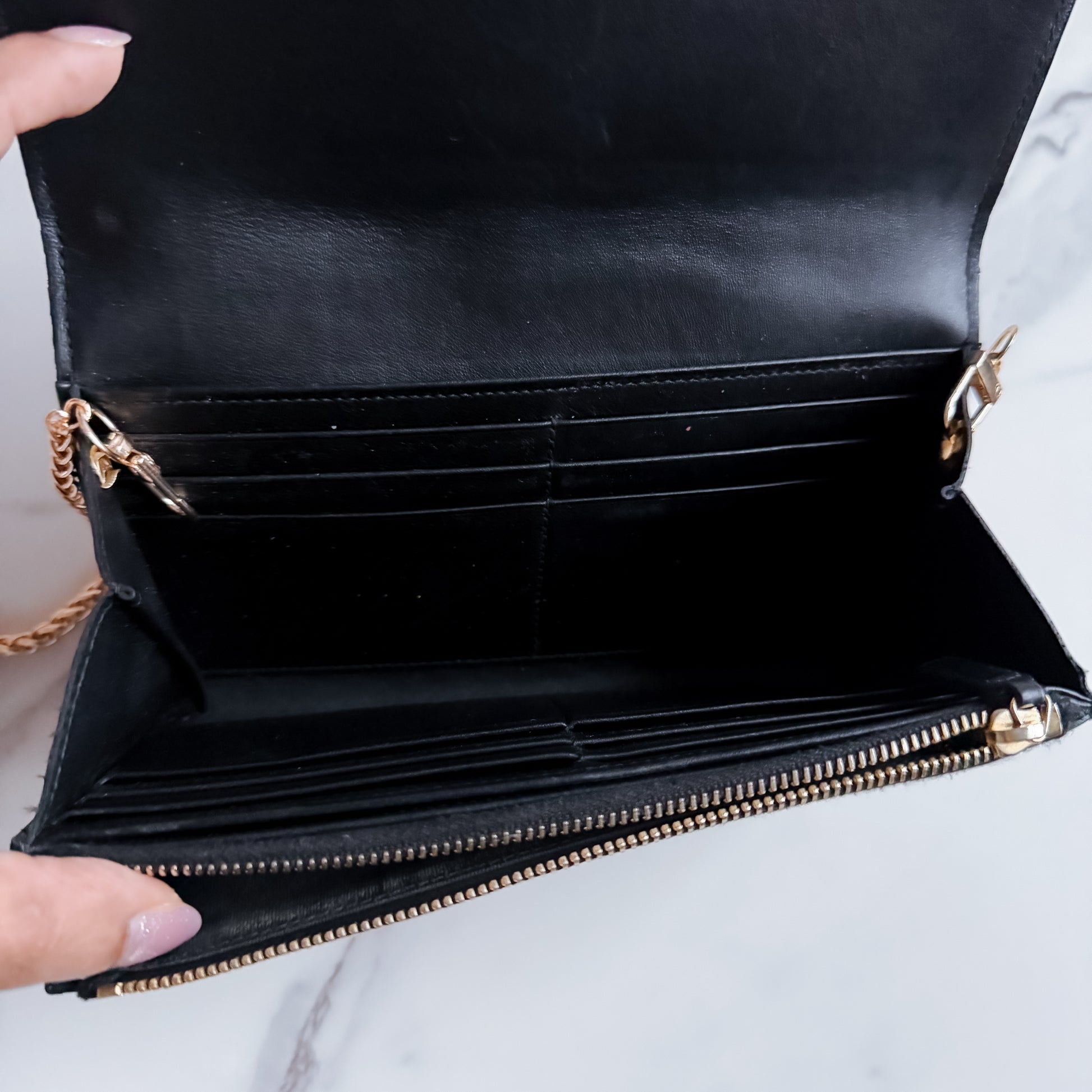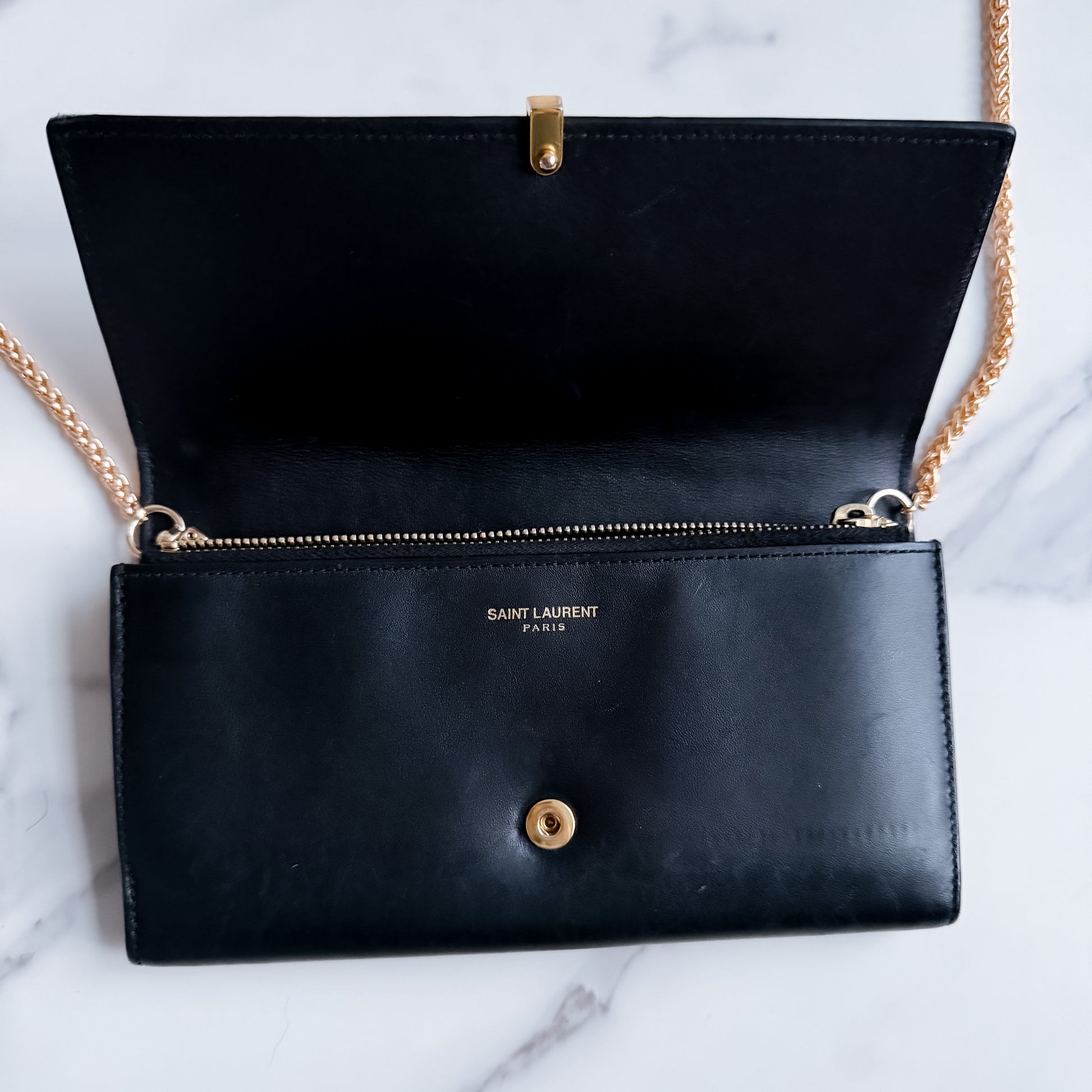 Authentic YSL Ligne Leather wallet on chain